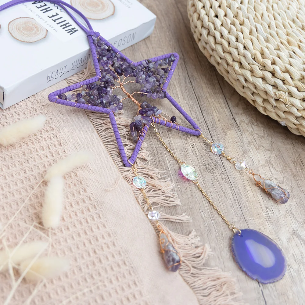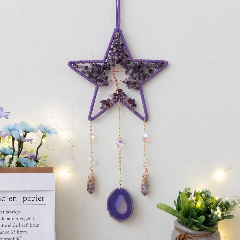 Transform your space with the stunning Chakra Agate Gemstone Dream Catcher, designed to dispel nightmares and invite tranquility into your bedroom. Why you'll love it: - Unique design combining natural agate stones and chakra energy. - Handcrafted for a touch of elegance and modern decor. - Perfect gift for weddings, home decoration, or personal use. - Made from high-quality agate with a colorful array of variations. - Adds a serene ambiance to any room while enhancing your decor. Measuring slightly varied in size and weight due to the natural nature of the stones, this dream catcher not only serves as a beautiful decorative piece but also promotes peace and good dreams. Please note, each agate crystal is unique, showcasing its own patterns and colors. To use, simply hang it in your bedroom or living space where you desire a calming influence, allowing its beauty to enhance your environment. Perfect fit for any wall or corner of your home, this exclusive piece is a must-have for serenity seekers. Limited time only—get yours today!