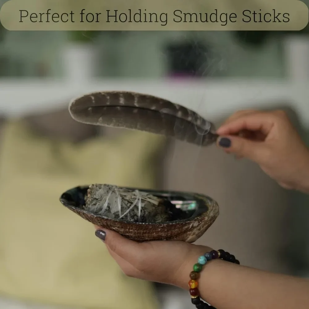 Transform your space with this stunning Natural Abalone Shell Incense Holder set! Perfect for cleansing rituals, meditation, or as a unique home decor piece. Why you'll love it: - 100% Natural Abalone Shell for a Unique Touch. - Handcrafted Wooden Stand for Stability and Style. - Versatile Use for Incense, Sage, and Decor Display. - Gorgeous Pearly Iridescent Colors to Enhance Aesthetics. - Perfect for Meditation and Cleansing Your Space. This set includes one large abalone shell (5.9-6.7 inches) and a beautifully hand-carved wooden stand (4 inches) featuring a cobra head design. Each abalone shell varies slightly in color, shape, and size, making it a truly exclusive addition to your home. To use, simply place your incense or sage on the abalone shell for a safe and stylish burning experience. Cleanse your environment, elevate your meditation practice, and display your favorite treasures – this is the ideal choice for any altar or relaxing space. Get yours today and elevate your home decor!
